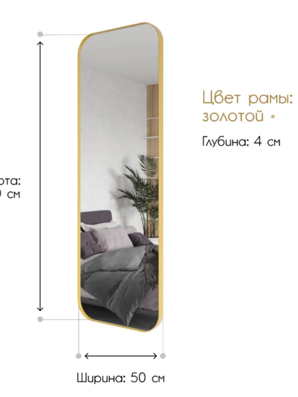 Зеркало «Evolve». Артикул GMZ-12-1/2/3 Эффектное настенное зеркало в тонкой металлической раме с закруглёнными углами можно с уверенностью назвать универсальным. Оно имеет прямоугольную форму и подходит как к классическим интерьерам, так и к современным. Крупный формат делает это зеркало функциональным с возможным размещением в помещениях различного назначения: спальне, ванной, гостиной, коридоре. Рама выполнена из высокопрочного металла, поэтому зеркало устойчивое и безопасное. Зеркальное полотно бельгийского производства, бренда AGC, продукция которого высоко ценятся во всём мире.Характеристики:– габаритные размеры – 1500х500х40 мм, металлический профиль тонкий – 4х40 мм, радиус закруглений – R100; – высокопрочный защитный полимерный слой, порошковая окраска; – возможные цвета – золотой, чёрный, белый; – саморезы для крепления к стене в комплекте; – вес – 20 кг; – гарантия – 1 год.